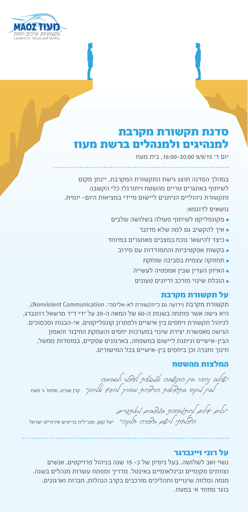 הזמנה להשתתפות בסדנת תקשורת מקרבת לרשת מעוז